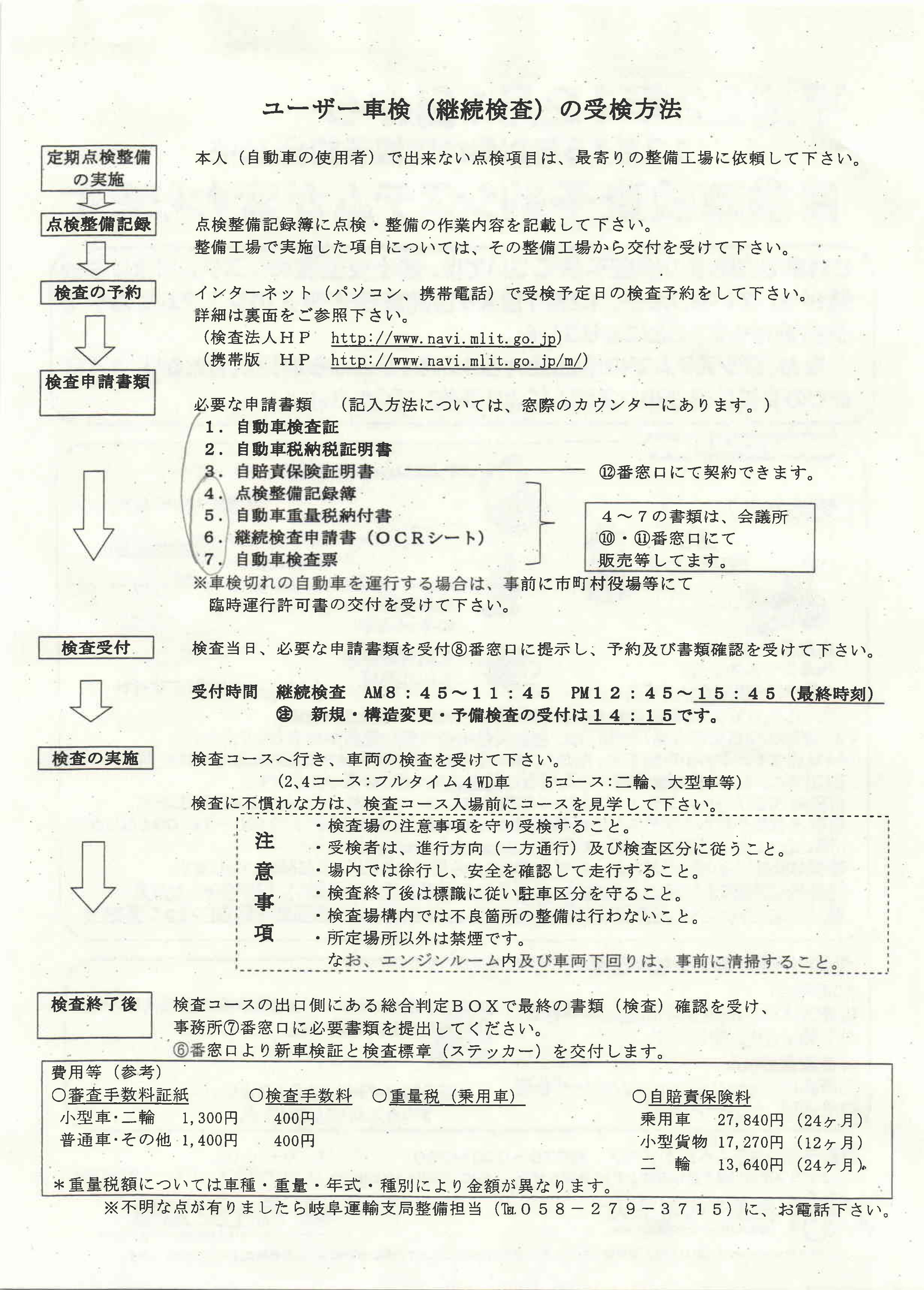 それで「ユーザー車検の受検方法」という書類をもらいました。これに手順が書いてあります。