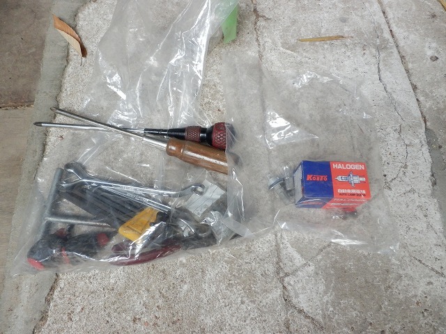 あとは、万が一ライトの電球が球切れするといけないので、予備の電球を準備しておきます。その他工具類も少々持ってきます。