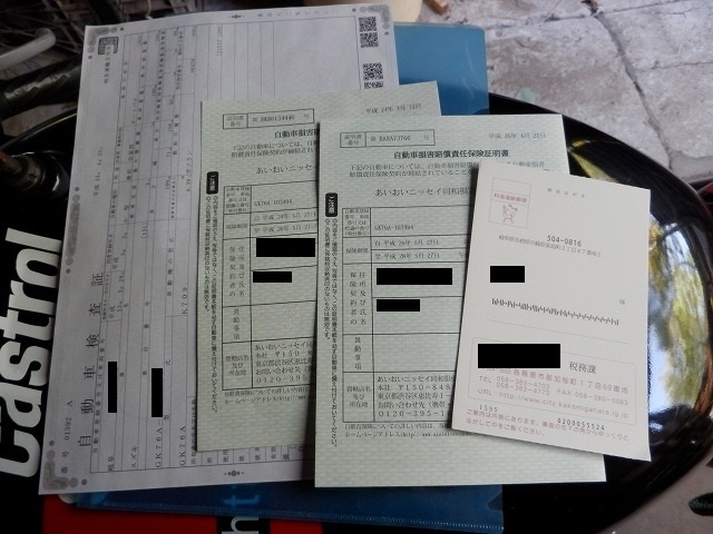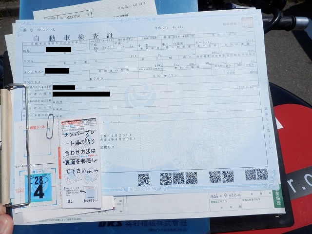 新しい車検証とナンバーに貼るステッカーをもらいました。