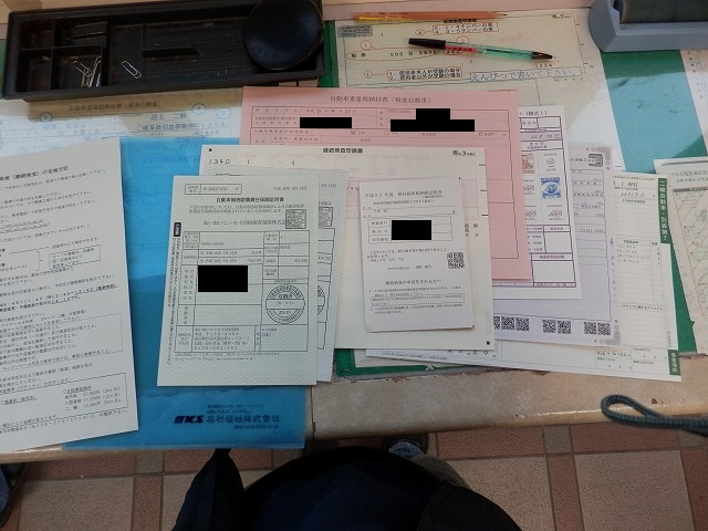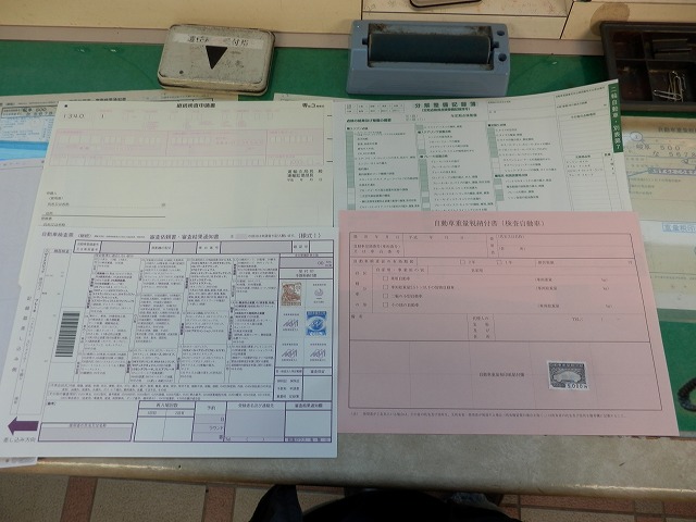 書類に忘れ物がないかチェック。(車検証、自賠責保険証、納税証明書)