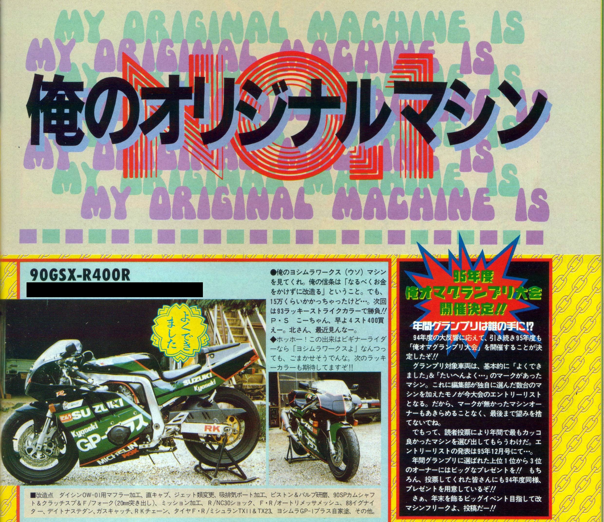 せっかくなので試しに当時のバイク雑誌「バ○バ○マシン」に投稿したら、Tシャツとオリジナルステッカーがもらえました。