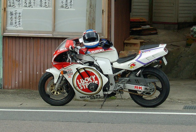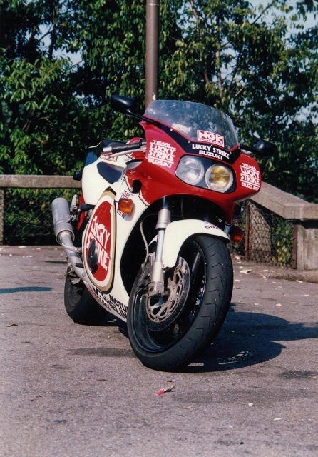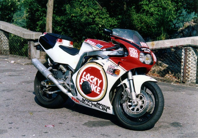ガンマのシートカウルが自分でも結構気に入っていましたし、ケビンシュワンツが好きでしたので気分だけでもGPレーサーを楽しんでいた頃です。